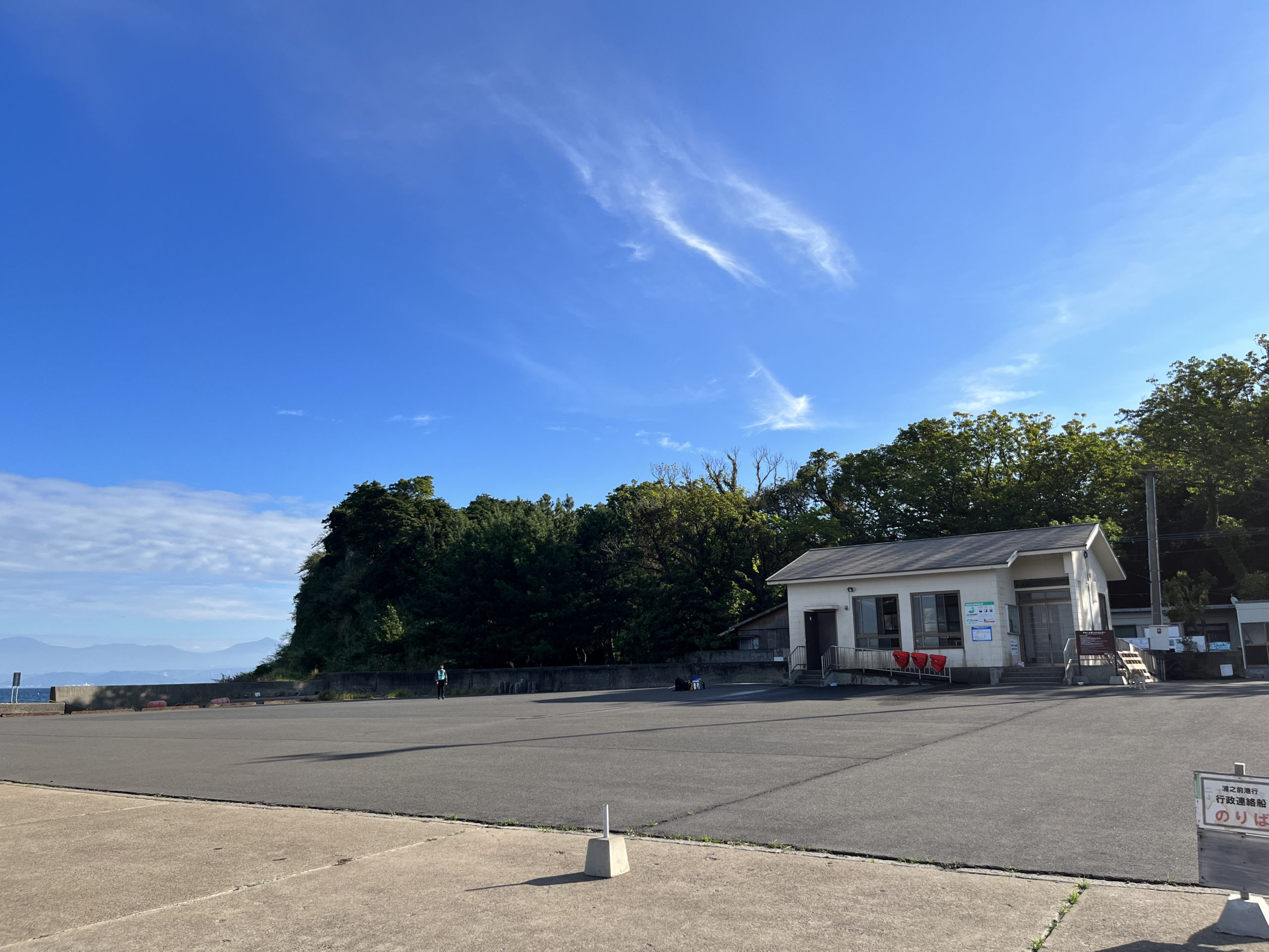 港のすぐそばには、公民館があり向かって左側はトイレもあります。この日はちょうど、この島の住人の佐々木さんご夫婦がいらっしゃってトイレのお掃除中でした。ありがたいですね〜、初めてこの島に来たとはいえ、このようにお掃除してくださる方がいるからこそ快適に使用できるわけですm(_ _)m。改めまして、ありがとうございます!