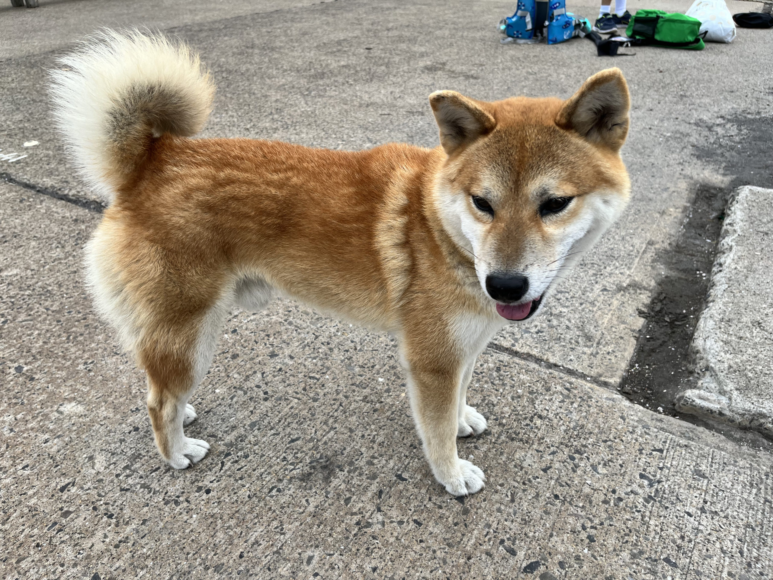 新島に到着すると早速、この島にお住まいのわんちゃんがお出迎え〜!