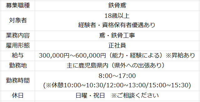 技能的なことや安全に対する知識はもちろん、ビジネスマナーや仕事の基本的なことまで丁寧に指導いたします。